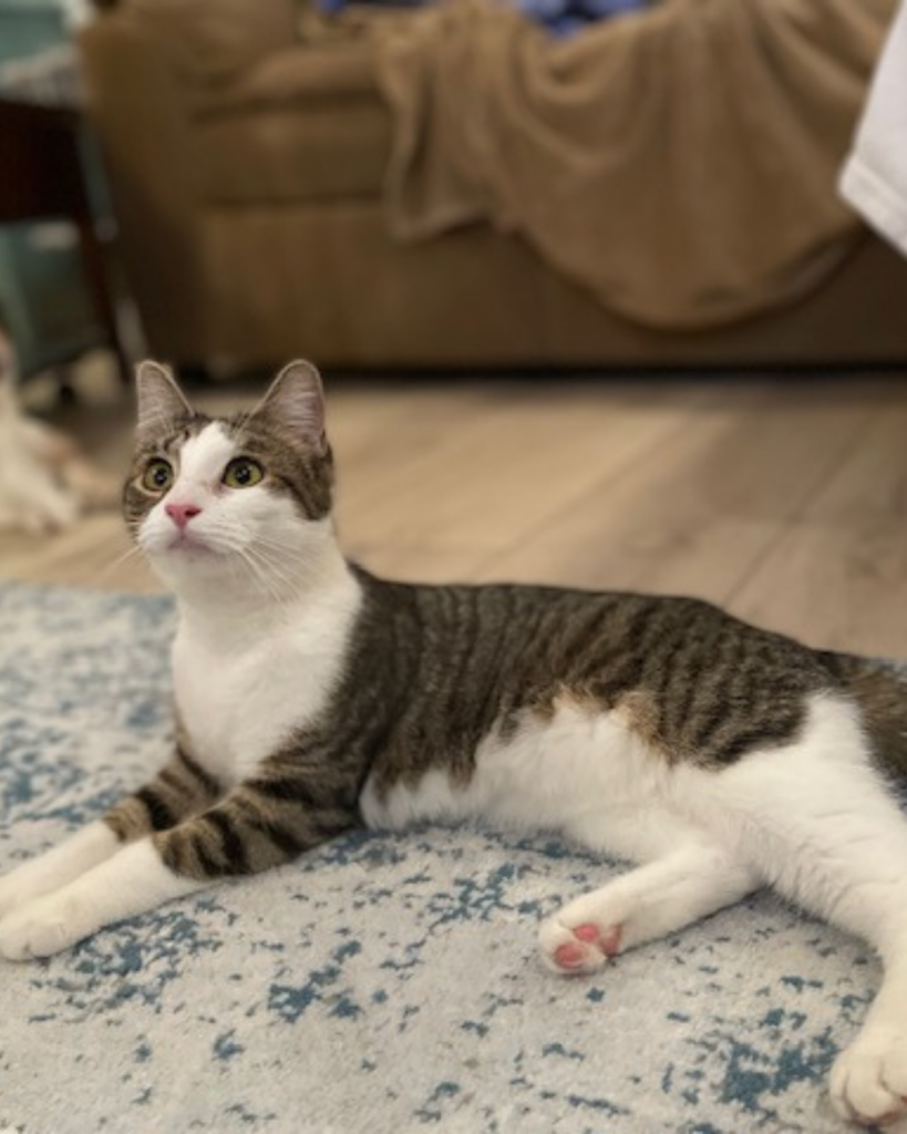 Fozziwig is an overly affectionate sweetheart with a big love for belly rubs and human attention. Friendly, gentle, and great with other cats, he quickly charmed everyone he met. He also shared a special bond with his littermate, Rizzo, proving just how comforting companionship can be.