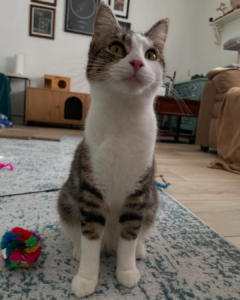 Rizzo is a curious, sweet boy with a playful streak and a habit of carrying his toys everywhere he goes. Full of personality and charm, he brought endless smiles to everyone who met him. Rizzo shared a special bond with his littermate brother, Fozziwig, proving once again that kittens really are better together.