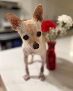 August 2025: Poppie has gone to her amazing furever home with a client of Iridescence Salon & Spa! We’re so excited to get updates and photos as she thrives in her new life.