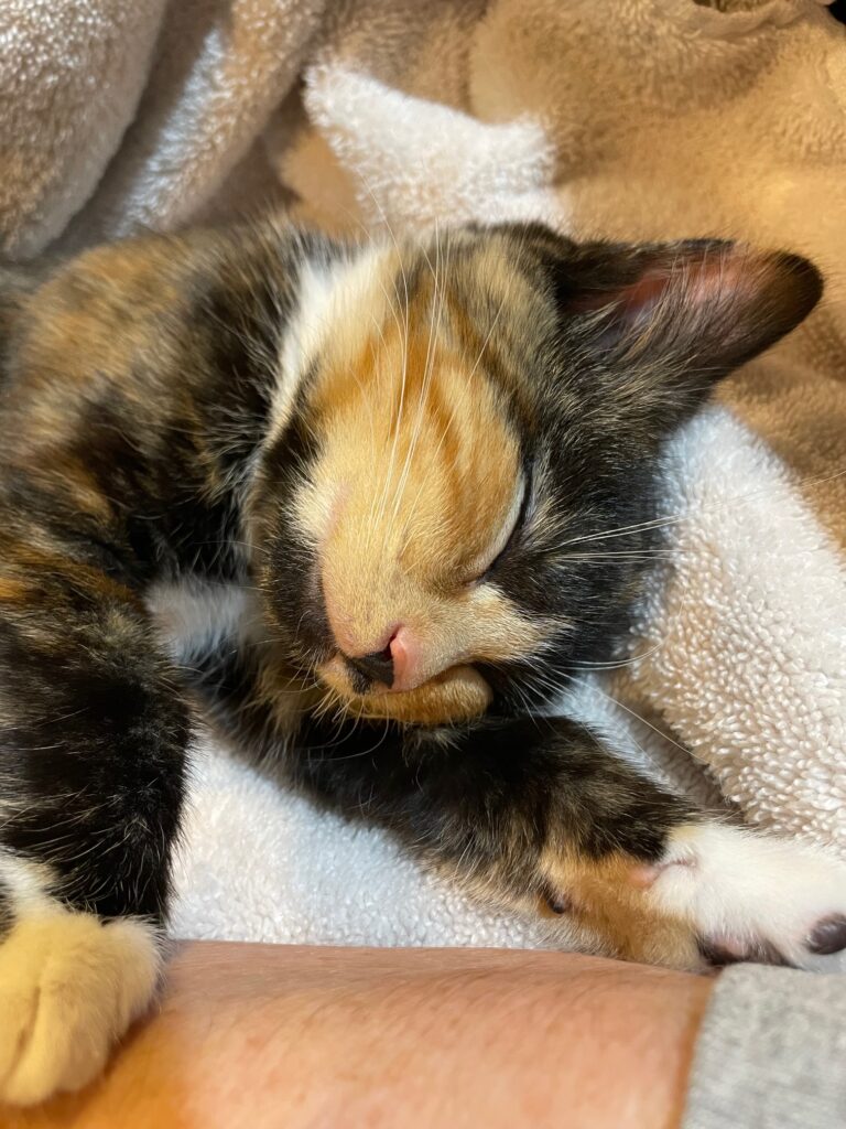 After months of trying to safely trap a savvy momma cat in our community, we were finally able to rescue two of her precious kittens, Hazel and Xena. We’re thrilled to share that Xena has been adopted!